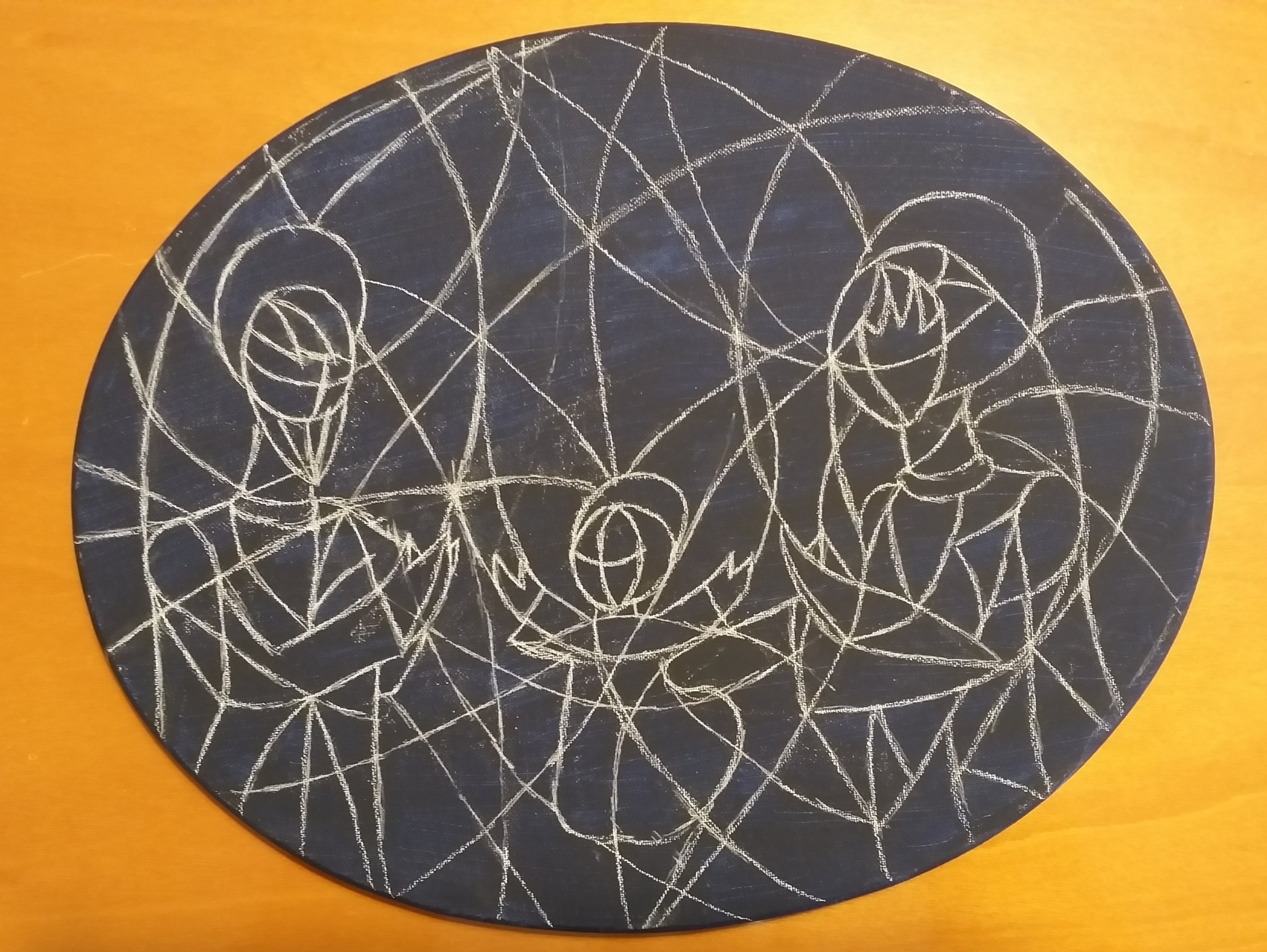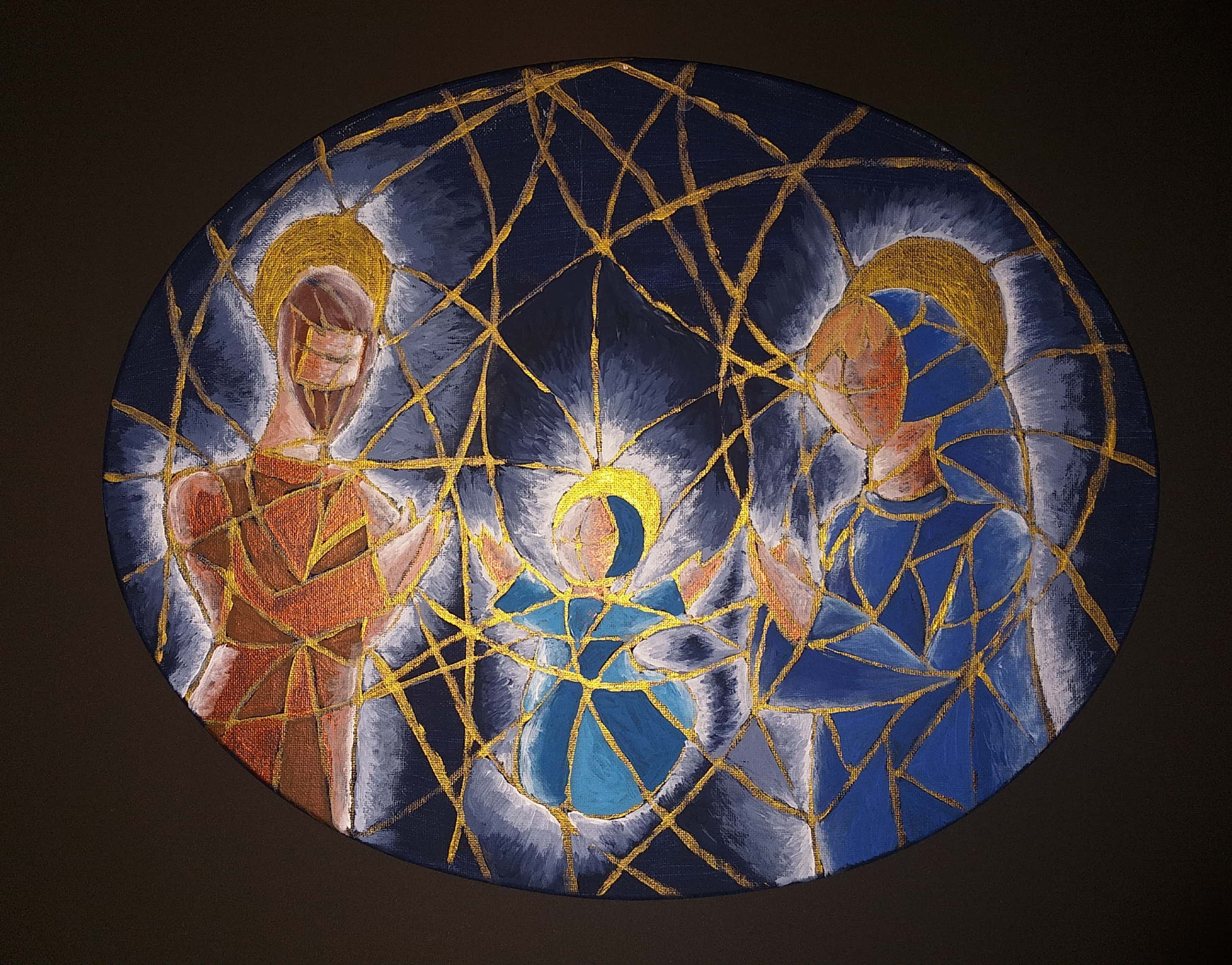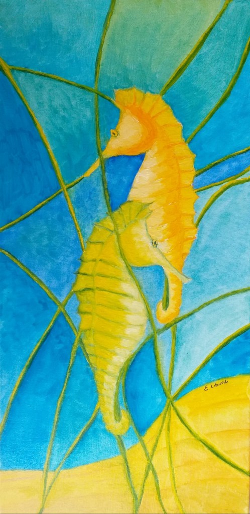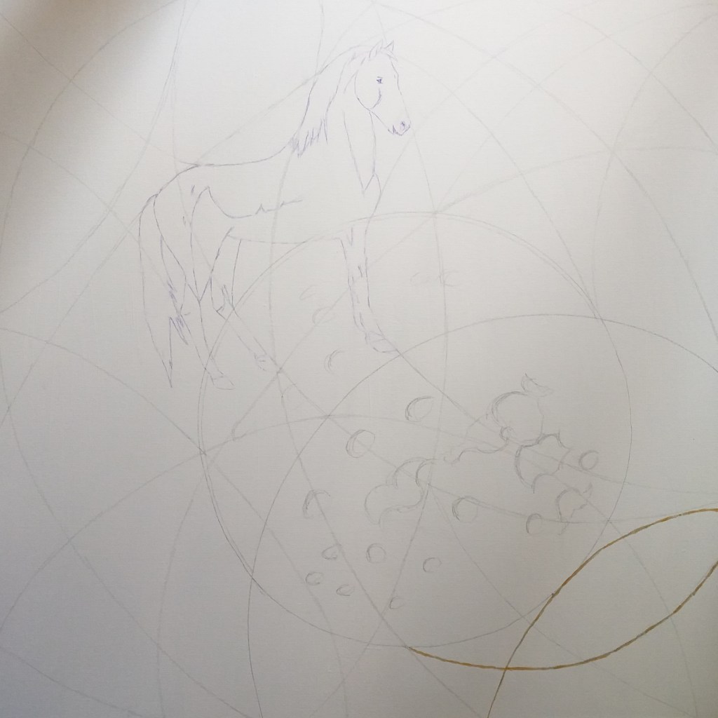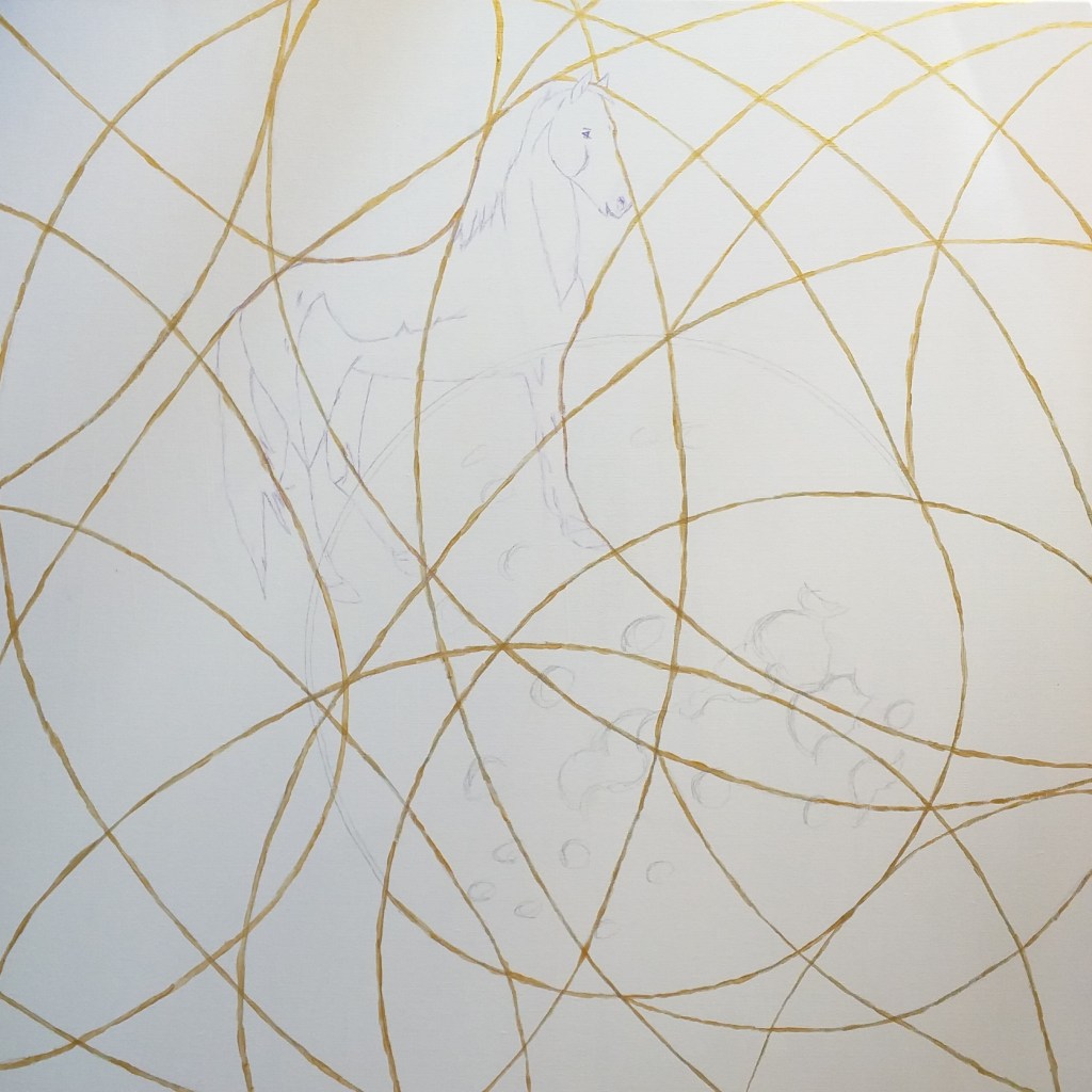 Il dipinto rappresenta due fazioni (cavalli) in lotta tra loro e divise da pensieri (colori) contrastanti, che giocano a scacchi la partita della vita altrui. L’unica salvezza è rappresentata dalle nuove generazioni che con la loro saggezza e innocenza riescono a fondere i due pensieri e a creare l’unione, la pace.