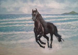 Riprendiamo il nostro cavallo, per il momento ho rivisto il mare, le onde che risultavano troppo grossolane, sono state revisionate, anche la schiuma in alcuni punti risultava eccessiva. La pittura ad olio è qualcosa di empirico, si procede sempre per tentativi.