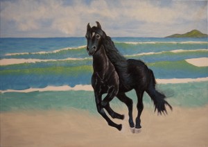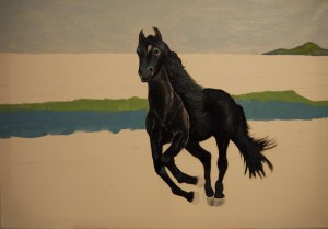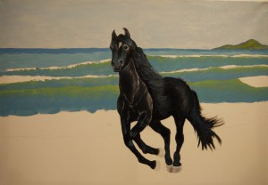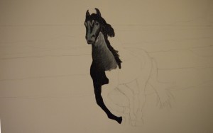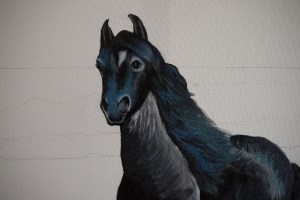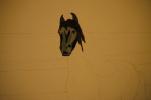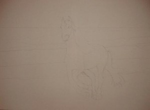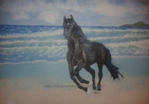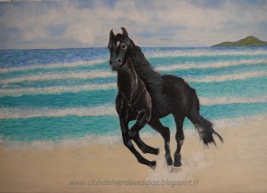 Questo è il risultato di primo abbozzo del cavallo, ora, lasciamo asciugare. Proseguiremo nei prossimi giorni con i dettagli dell’animale e le onde del mare sullo sfondo.
