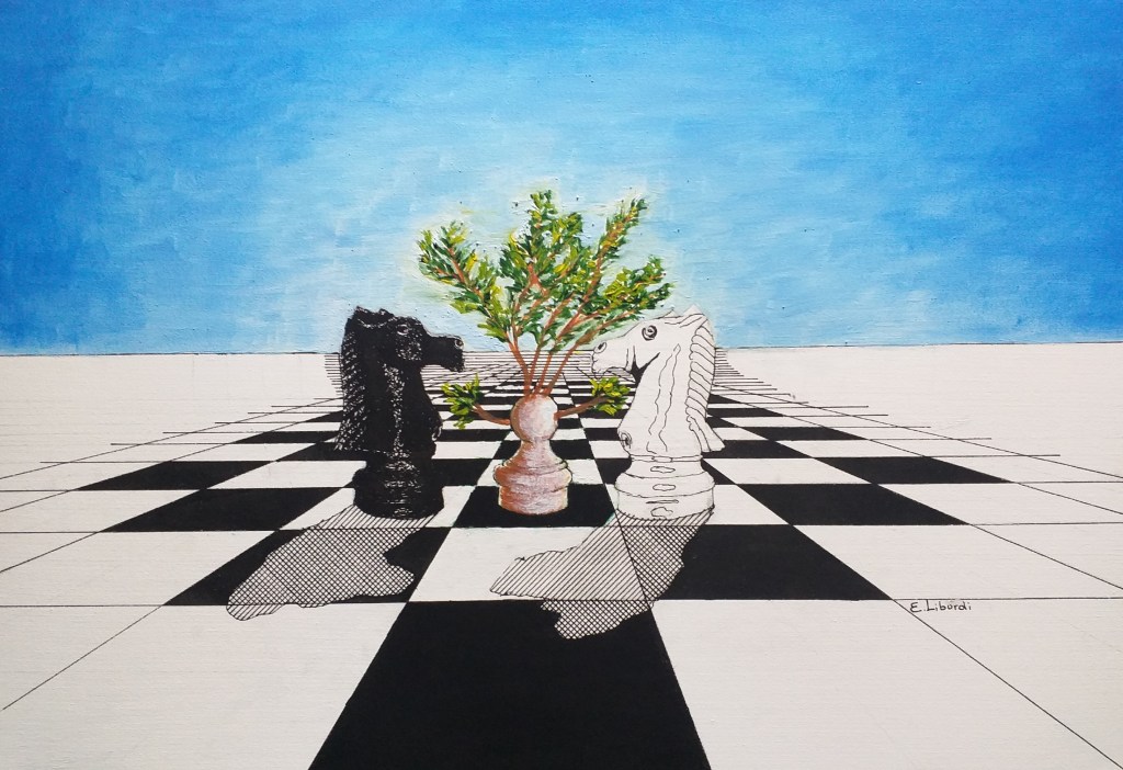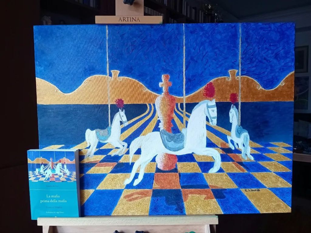 In copertina il mio “Gli Adulatori” olio su tela 60x80cm del 2019.