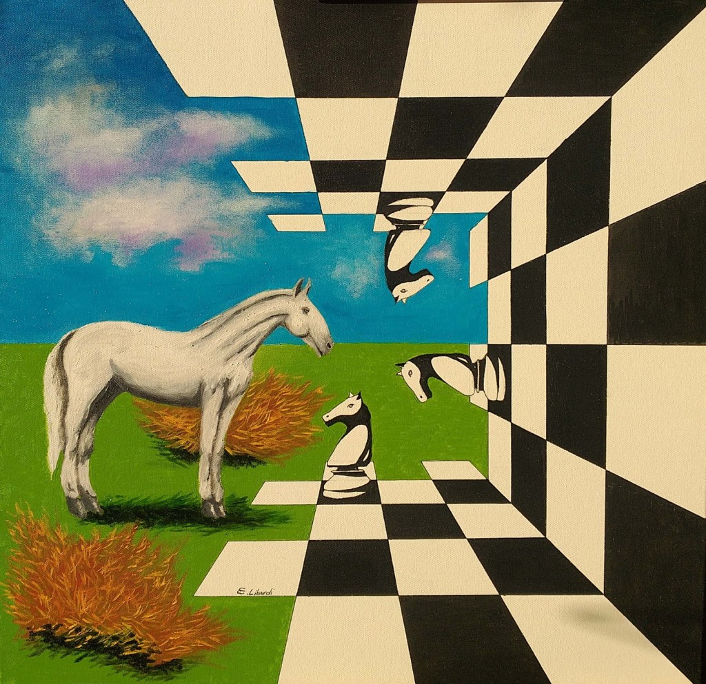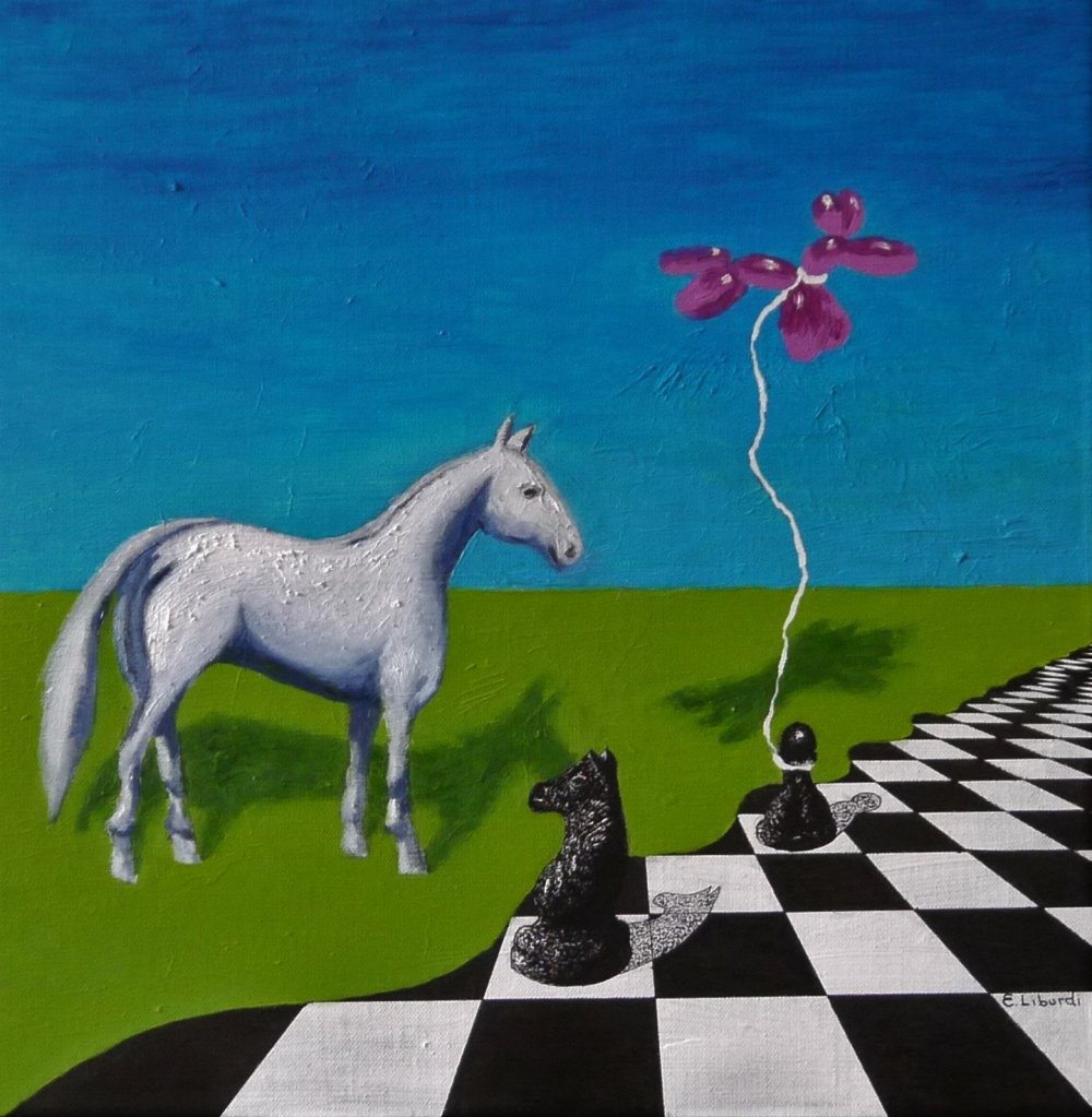 I cavalli girano attorno al Re, come in una metafora sull’atteggiamento umano nei confronti di chi ha più potere, una rappresentazione in cui ognuno recita il proprio ruolo, sembra quasi di sentire la musica della giostra che rende tutto ancora più grottesco.