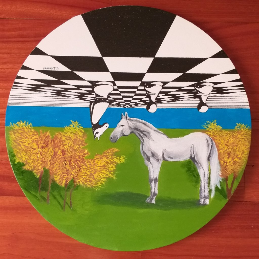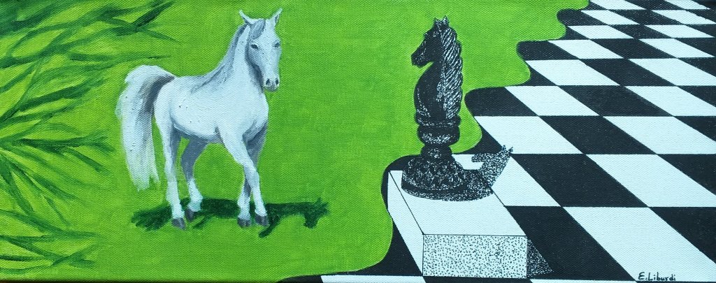 “CAVALLO E DESERTO” olio su tela 80x100cm aprile 2020 “PIANO B” olio su tela 50x70cm dicembre 2019 “ALLUNAGGIO” olio su tela 50x70cm maggio 2019