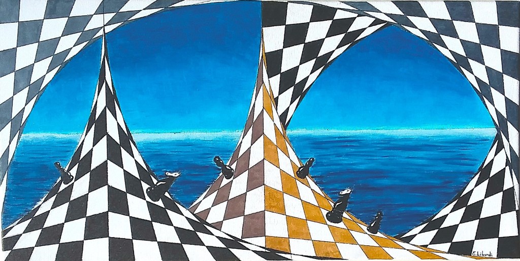 GROTTE ONIRICHE olio e china su tela 30x60cm, marzo 2025FISHEYE olio e china su tela 35x35cm, febbraio 2025DEFORMAZIONE VIRTUALE OVALE olio e china su tela 35x45cm, dicembre 2024DEFORMAZIONE VIRTUALE olio e china su tela 50x120cm, ottobre 2024ONDE SONORE NEL TEMPO olio e china su tela tonda diametro 25cm, ottobre 2024SALTI DIMENSIONALI olio e china su tela diametro 40cm, gennaio 2024SALTO DIMENSIONALE olio e china su tela tonda diametro 25cm, febbraio 2024METAVOLO olio e china su tela 40x50cm, gennaio 2024“PEDONI” olio e china, tela tonda 25cm aprile 2023“MULTIVERSO” olio e china, tela 60x60cm aprile 2023“VERSO E METAVERSO” olio e china, tela tonda 40cm marzo 2023“QUATTRO CAVALLI” olio e china su tela di lino 40x40cm gennaio 2023“FUORI DAGLI SCHEMI” olio e china su tela 20x50cm novembre 2022“RISVEGLIO” olio e china su tela 35x50cm novembre 2022“PACE” olio su tela 60x120cm settembre 2022“RINASCITA” olio su tela 50x70cm febbraio 2022