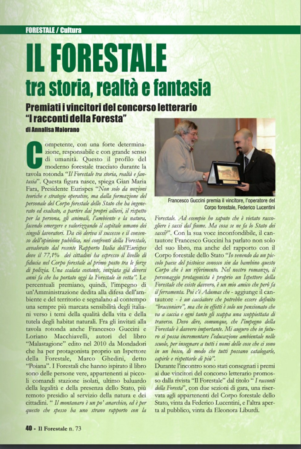 FEBBRAIO 2013 “I racconti della Foresta”. Due le sezioni in gara, una riservata al Corpo forestale dello Stato, l’altra, pubblica, vinta da questo mio racconto: Juglans regia